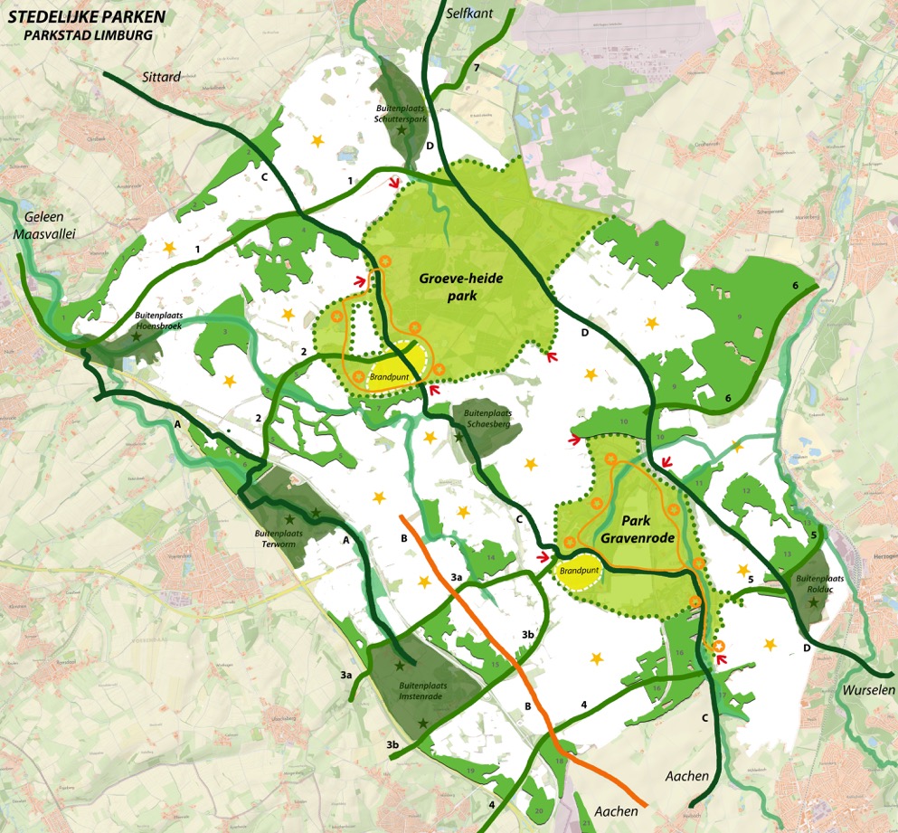 Visie voor het benutten en ontwikkelen van de landschappelijke kwaliteiten van de groengebieden in Parkstad Limburg. Belangrijke pijlers betreffen het ontsluiten van zilverzandgroeves, ontwikkelen van Buitenplaatsen op de overgang tussen stad en land. En het verbinden en versterken van de natuur in het grensoverstijgende Heidenaturpark.