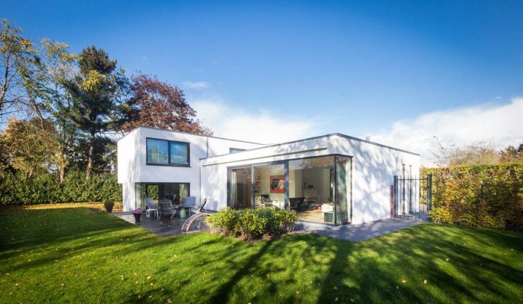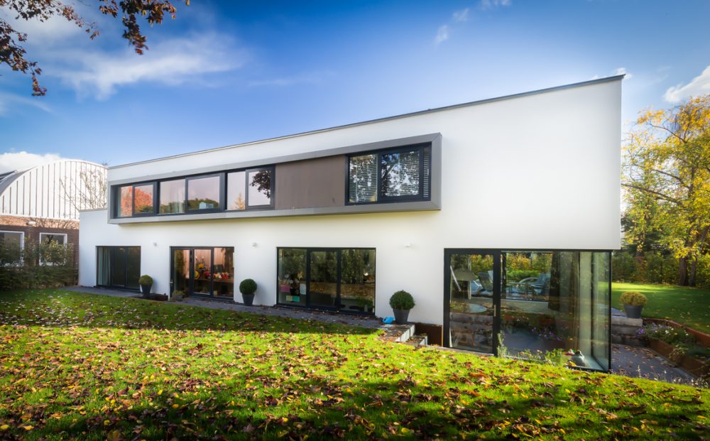 Ontwerp voor een moderne villa in Rijnsweerd, waarin een bijzondere ronde trap de verschillende niveau’s met elkaar verbindt en als centraal element in het concept fungeert.